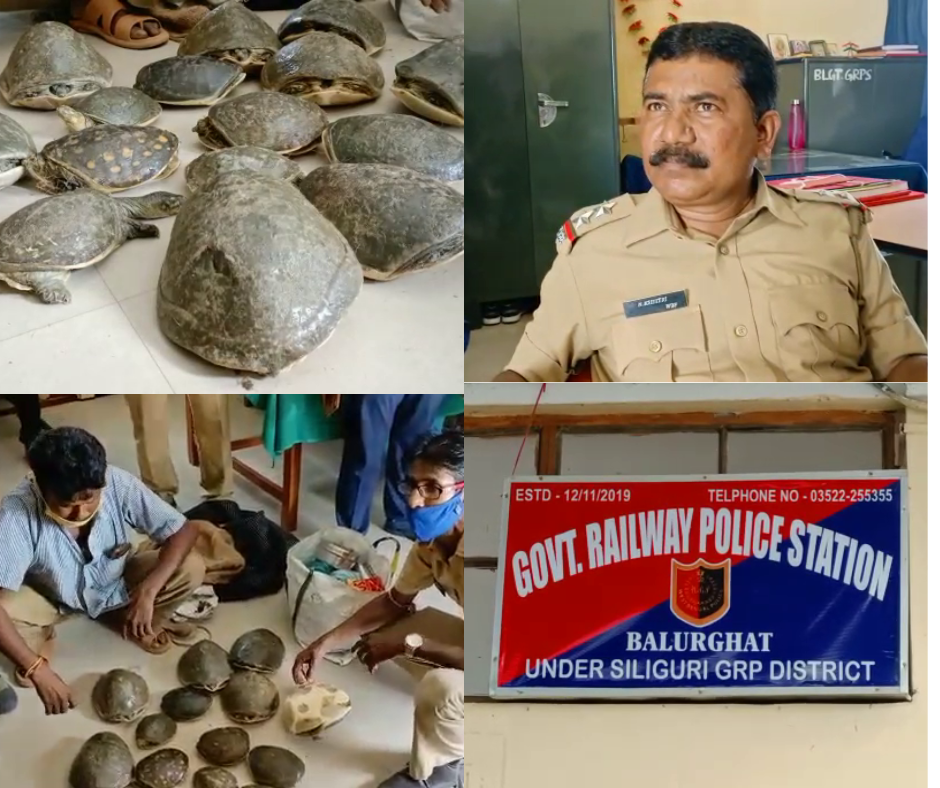 বুধবার পাচারের আগেই বালুরঘাট রেল স্টেশন থেকে উদ্ধার হলো ১৫ টি কচ্ছপ। ওই কচ্ছপ গুলো উদ্ধার হয় বালুরঘাট রেল স্টেশন এলাকা থেকে। এরপর রেল পুলিশ উদ্ধার হওয়া কচ্ছপ গুলি বালুরঘাট বনদপ্তরের হাতে তুলে দেয়। সূত্রের খবর উদ্ধার হওয়া ১৫ টি কচ্ছপের মধ্যে একটি কচ্ছপ মারা গেছে। এই কচ্ছপ গুলি কোথা থেকে নিয়ে আসা হচ্ছিল বা কোথায় নিয়ে যাওয়া হচ্ছিল তা খতিয়ে দেখছে পুলিশ। পাশাপাশি বালুরঘাট বনদপ্তরের কর্মীরাও পুরো ঘটনা খতিয়ে দেখছে। পুলিশ সূত্রে খবর,মালদা গৌড় লিংক থেকে ১৫ টি কচ্ছপ উদ্ধার করে বালুরঘাট জিআরপি থানার পুলিশ। মালদা থেকে ফেরার পথে গঙ্গারামপুর এর কাছে জিআরপি থানার পুলিশ ট্রেনে উঠলে সেখানে একটি ফাঁকা ব্যাগ দেখতে পায়। সেখান থেকে ওই কচ্ছপ গুলি উদ্ধার হয়। বুধবার ওই কচ্ছপগুলিকে বালুরঘাট জিআরপি থানার পুলিশের পক্ষ থেকে বনদপ্তরের হাতে তুলে দেওয়া হয়েছে।