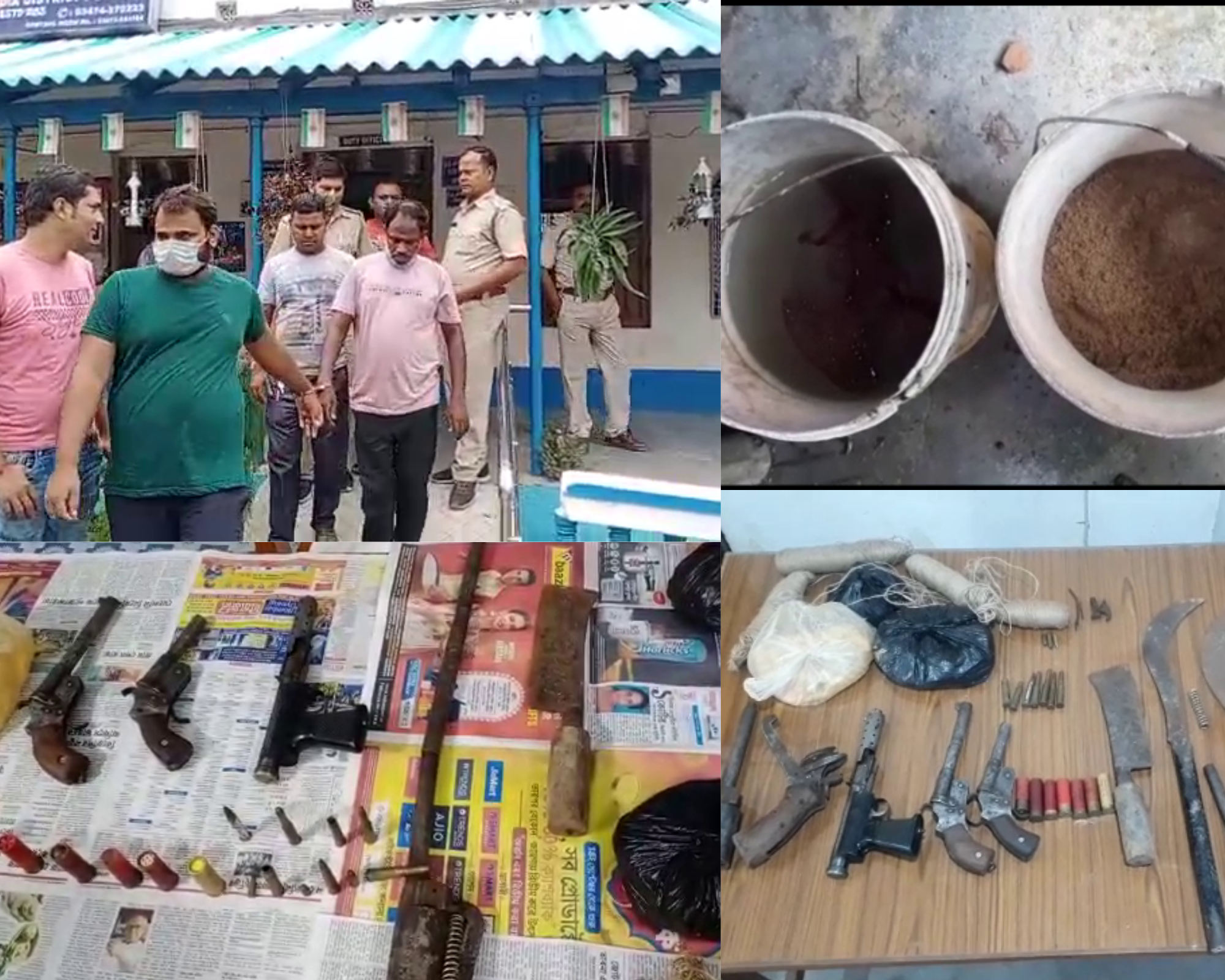 বেশকিছু আগ্নেয়াস্ত্র গুলি, বোমা ও বোমা তৈরির মসলা সহ একজন গ্রেফতার করল চাপড়া পুলিশ। গতকাল গভীর রাতে পচা শেখ নামে এক ব্যক্তির বাড়িতে তল্লাশি চালিয়ে চারটে বন্দুক ১২ রাউন্ড গুলি,৬ টি বোম সহ বোম তৈরি মসলা উদ্ধার করল পুলিশ। ধৃতকে আজ কৃষ্ণনগর জেলা আদালতে তোলে। সূত্রের খবর অভিযুক্তকে জিজ্ঞাসাবাদের জন্য পুলিশ হেফাজত নেওয়ার আবেদন জানায় আদালতে। ভারত বাংলাদেশ সীমান্তবর্তী চাপড়া থানা এলাকা থেকে এগুলো উদ্ধার হওয়ায় চাঞ্চল্য সৃষ্টি হয়। এই এলাকায় বিভিন্ন জায়গায় থেকে মাঝে মধ্যেই উদ্ধার হয় গুলি-ও বোমা। কোথা থেকে এগুলি মজুদ করা হয়েছিল বাকি কারণে রাখা হয়েছিল তার তদন্ত শুরু করেছে চাপড়া থানার পুলিশ।