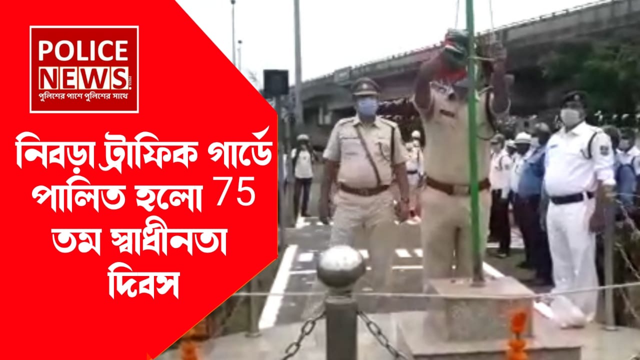 inহাওড়া নিবড়া ট্রাফিক গার্ড-এর পক্ষ থেকে 75 তম স্বাধীনতা দিবস পালন করলেন। জাতীয় পতাকা উত্তোলন করেন হাওড়া ডিসি ট্রাফিক অর্ণব বিশ্বাস। উপস্থিত ছিলেন ট্রাফিক গার্ড এর সকল পুলিশকর্মীরা। জাতীয় সংগীতের মধ্য দিয়ে দেশমাতৃকার বন্দনা করা হয় এই দিন। হাওড়া ডিসি ট্রাফিকের হাত দিয়ে একটি করে ছাতা ও ফ্লুয়োসেন্ট জ্যাকেট তুলে দেন যারা রাস্তায় ডিউটি করেন সেসব পুলিশ কর্তাদের হাতে। পুলিশ নিউজ এর সাক্ষাৎকারে সকলকে 75 তম স্বাধীনতা দিবসের শুভেচ্ছা সহ,সাবধানে গাড়ি চালানোর জন্য সকলকে অনুরোধ করেন তিনি।