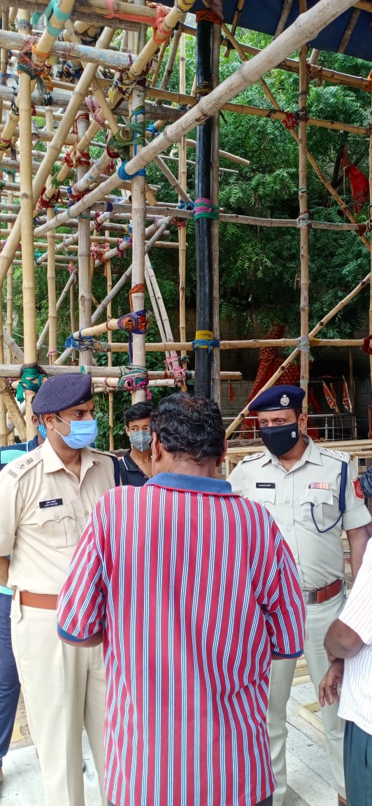 দুর্গাপুজোর আর অল্পকিছুদিন বাকি এই অতি মারির মধ্যে চলছে পুজোর প্রস্তুতি। চলছে সরকারি বিধি নিষেধও। রাজ্য সরকার পুজো কমিটিগুলোকে প্যান্ডেল করার কিছু নিয়ম কানুন বেঁধে দিয়েছেন। আর সেই নিয়ম ঠিক মতো মেনে পুজা কমিটি গুলো কাজ করছে কিনা তা খতিয়ে দেখতে আজ ব্যারাকপুর পুলিশ কমিশনা রেডের ডিসিপি (সাউথ) এসিপি (দমদম) দমদমের বিভিন্ন পুজো প্যান্ডেল গুলি ঘুরে দেখেন এবং তারা ভাল করে চেক করেন প্রতিটি প্যান্ডেল। এছাড়া এই বিষয় পুজো কমিটির কর্মকর্তাদের সঙ্গে কথাবার্তা বলেন পুলিশ আধিকারিকরা। তারা আবেদন করেন,সমস্ত রকম প্রভৃতি মেনেই যেন এই বছরের পুজোর প্রস্তুতি নেওয়া হয়।