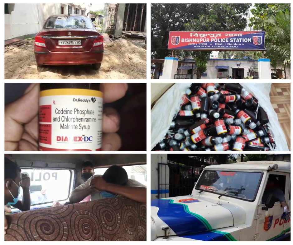 বেআইনী ভাবে পাচারের সময় ১২৩০ বোতল কাফসিরাফ আটক করলো বিষ্ণুপুর থানার পুলিশ। একই সঙ্গে দুই পাচারকারীকে গ্রেফতার করা হয়েছে বলে সূত্রের খবর। পুলিশ সৃত্রে খবর, গতকাল রাতে বিষ্ণুপুর স্টেশন সংলগ্ন এলাকায় নাকা চেকিং এর সময় একটি সন্দেহভাজন গাড়ি আটক করে পুলিশ। ঐ গাড়ি থেকে ১২৬০ বোতল কোভিন ফসফেট যুক্ত কাফসিরাপ উদ্ধার হয়। যার এক একটির মুদ্রিত মূল্য ১৩০ টাকা। একই সঙ্গে ঐ বেআইনী কাজে যুক্ত থাকার অভিযোগে পশ্চিম মেদিনীপুরের গড়বেতার বাসিন্দা নারায়ন চন্দ্র মাইতি ও বিশ্বজিৎ মান্না নামে দু’জনকে গ্রেফতার করে পুলিশ। ধৃতদের আজ বিষ্ণুপুর মহকুমা আদালতে তোলে পুলিশ।